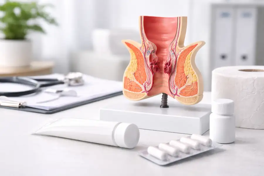 Para hemorroides con síntomas leves o moderados se pueden añadir flebotónicos orales (diosmina/hesperidina), que mejoran el tono venoso y reducen la congestión. También se utilizan pomadas o supositorios con componentes antiinflamatorios o vasoconstrictores para aliviar síntomas puntuales. Pero es importante entender que las pomadas no curan las hemorroides: alivian síntomas temporalmente.